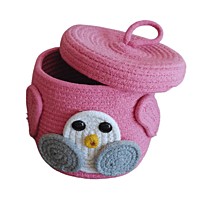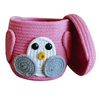 Cotton Kids Storage Basket with Lid – Cute Penguin Face (Pink) | Foldable Toy Organizer Box for Kids Room | Baby Shower Gift