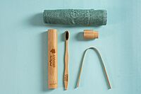 Personal Care Eco Hygiene Kit | Toothbrush, Tongue Cleaner, Travel Case & Bamboo Hand Towel (4 Items)