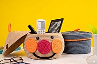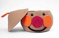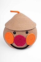 Round Cotton Storage Basket with Lid – Pumpkin Face | Eco-Friendly Cotton Organizer for Home & Office Storage